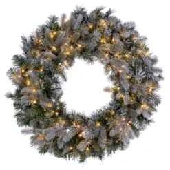 Vickerman Pre-Lit Artificial Christmas Wreath With Frosted Cones And Red Berries (27680)